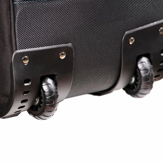 • Roulettes intégrées que facilitent le transport de la housse chargée et contribuent à sa rigidité en intégrant les tiges de renfort